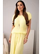 Objevte jedinečný komplet, který spojuje pohodlí a eleganci a vytváří dokonalý outfit pro každou příležitost. Vyrobený z lehké a prodyšné viskózy, poskytuje maximální komfort při nošení a zároveň vypadá velmi stylově. Plisovaná halenka s volným střihem jemně podtrhuje siluetu a dodává jí lehkost a moderní vzhled. Široké kalhoty dokonale ladí s halenkou a zajišťují volnost pohybu i elegantní vzhled. Celý komplet doplňuje ozdobný náhrdelník, který přidává jedinečný stylový prvek a eliminuje potřebu dalších doplňků. Tento set je ideální jak pro formální setkání, tak i pro každodenní nošení, kdy chcete vypadat elegantně, ale zároveň se cítit pohodlně. Vyberte si komplet z viskózy a užívejte si lehkost i nadčasový styl. Velikost je univerzální a vhodná pro ženy nosící velikosti S, M nebo L.