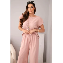 Viskózna blúzka + plisované nohavice tmavá púdrovo ružová