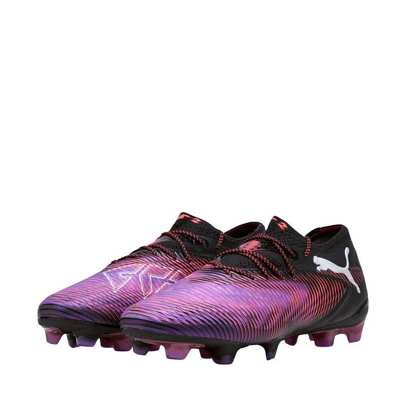 Buty piłkarskie Puma Future 8 Ultimate Low FG 108361 01 Profesjonalne, męskie korki Puma są doskonałym rozwiązaniem na ligowe spotkania rozgrywane na naturalnej murawie. Kolekcja Unlimited Pack. Strefy z symbolem Puma. Dane techniczne:· Fakturowana siateczka o dużej gęstości z GripControl Pro zwiększa kontrolę nad piłą i wyczucie· Poduszki Fuzionpods na cholewce chronią stopę, nie ograniczając swobody ruchów· Górna warstwa z LYCRA® i konstrukcja unieruchamiająca śródstopie· Technologia PWRTAPE w poprzek śródstopia zapewnia anatomiczne dopasowanie i stabilność· Podeszwa zewnętrzna FLEXGILITY zaprojektowana z myślą o szybkich obrotach i zwinnych ruchach we wszystkich kierunkach niezbędnych do wymanewrowania przeciwnika· Lekka wyjmowana wkładka z technologią NanoGrip· Graj ze sznurowadłami lub bez· Model na stopy standardowe i szerokie· FG: odpowiednie do użytku na twardej nawierzchni· Cholewka tego buta jest wykonana w co najmniej 20% z materiałów pochodzących z re