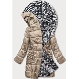 Béžovo-biela preložená obálková dámska bunda s kapucňou (B8040-12026)