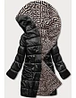 Dámska bunda s kapucňou v čierno-béžovej farbe (R8040)
