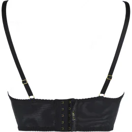 Úžasný, svůdný černý polokorzet upoutá pozornost strukturou materiálu - jemnou krajkou s příjemným povrchem a netradiční výšivkou pod košíčky. Ramínka jsou nastavitelná, ale neodepínací, s pětiřadým zapínáním na háčky a smyčky. Zadní část modelu je vyrobena z pohodlného dvojitého tylu. K doplnění sady doporučujeme tanga V-10515 brazyliana. Má boční kostice, žádné výplně košíčků.