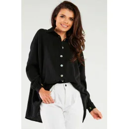 Oversized košeľa je skutočným must-have v ženskom šatníku. Model so zapínaním na gombíky umožňuje upraviť hĺbku výstrihu podľa vašich preferencií. Voľný strih zakryje drobné nedostatky tela a je skvelou alternatívou ku klasickej košeli.