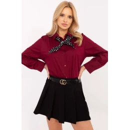 Elegantní dámská košile s klasickým střihem, ideální na formální události, do práce nebo na každý den, kdy chcete vypadat stylově a profesionálně. Košile je šitá z vysoce kvalitní bavlny s přídavkem elastanu, co zaručuje pohodlí při nošení a ideální přizpůsobení. Model s klasickým límečkem a zapínáním na knoflíky je esencí nadčasové elegance. Dlouhý rukáv umožňuje nošení košile v každém ročním období. Hladká textura materiálu jí dodává minimalistický šarm, který lze snadno sladit s různými styly. Výjimečným prvkem je odnímatelný šátek, který umožňuje jemné zpestření outfitu. Můžete ho nosit podle příležitosti, s šálkem pro elegantnější efekt nebo bez něj pro jednodušší vzhled. Jedná se o skvělý návrh pro ženy, které ocení klasiku s nádechem všestrannosti.