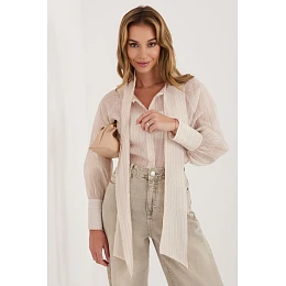Dámska košeľa klasického strihu, ktorá je ideálna na každodenné nosenie, do práce aj na formálnejšie udalosti. Model so štandardnou dĺžkou a zapínaním na gombíky spája nadčasovú eleganciu s modernými detailmi. Je vyrobený z príjemnej zmesi lyocellu a polyesteru, ktorá poskytuje pohodlie a odolnosť. Tkaninu zdobí jemný pruhovaný vzor, ktorý celku dodáva ľahkosť a štýl. Košeľa má nadýchané rukávy zakončené širokými manžetami, ktoré dodávajú výrazný tvar. Ďalšou výhodou je šnurovanie pri krku, ktoré umožňuje vytvoriť elegantnú mašľu alebo voľný strih v závislosti od príležitosti.