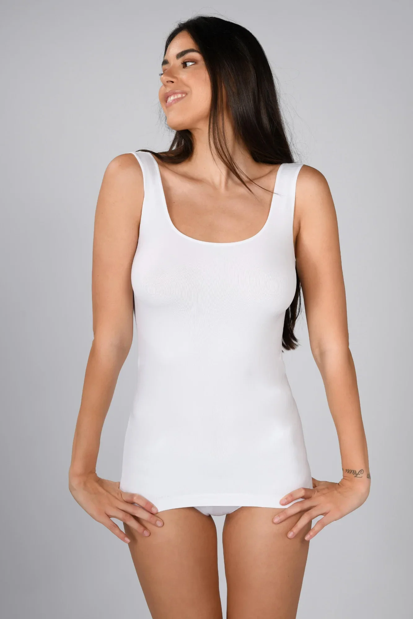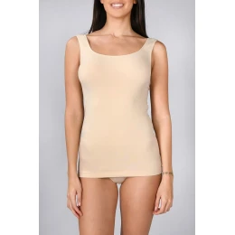 Dámska bezšvová košeľa so širokými ramienkami a okrúhlym výstrihom. Mäkké elastické mikrovlákno sa dokonale prispôsobí telu a poskytuje pocit pohodlia a komfortu. Košeľa je vhodná na každodenné nosenie.
