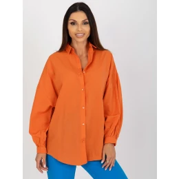 Oranžová košeľa nadrozmernej veľkosti s buffovými rukávmi.