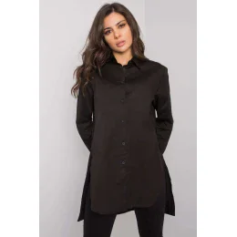 Čierna bavlnená košeľa s dlhými rukávmi a zapínaním na gombíky.