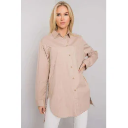 Béžová bavlnená košeľa s dlhými rukávmi a dlhým strihom. Košeľa sa zapína na gombíky.
