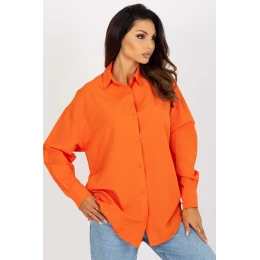 Dámska košeľa jednoduchého voľného strihu s dlhými rukávmi, zapínanie na gombíky. Zaväzovanie na bokoch.