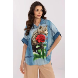 Dámska košeľa voľného strihu, ideálna na každý deň, vyniká farebnou potlačou, ktorá jej dodáva energiu a štýl. Je vyrobená z viskózy s prídavkom polyesteru a poskytuje pohodlie a priedušnosť, čo je ideálne na teplejšie dni. Košeľa má asymetrickú dĺžku, krátke rukávy s ohrnutým lemom a klasický golier, čo jej dodáva eleganciu. Zapínanie na gombíky vpredu uľahčuje obliekanie a dodáva praktickosť. Táto košeľa je skvelou voľbou pre ženy, ktoré ocenia štýlové a zároveň pohodlné oblečenie na každý deň.