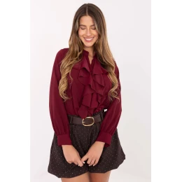 Klasická dámska košeľa, v ktorej sa spája elegancia s nadčasovým štýlom. Je vyrobená z kvalitnej zmesi polyesteru a elastanu a poskytuje pohodlie, skvelý strih a voľnosť pohybu počas celého dňa. Model má dlhé rukávy a stojatý golier a zapínanie na gombíky mu dodáva klasický charakter. Pozornosť pútajúci džbán na prednej strane jemne zdobí košeľu a dodáva jej ženský pôvab a eleganciu. Hladký materiál a štandardná dĺžka robia z košele skvelý kúsok do práce, na návštevy alebo bežné príležitosti.