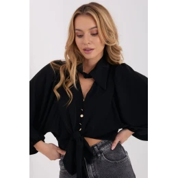 Elegantní klasická košile je univerzálním kouskem šatníku, který se skvěle hodí jak na společenské události, do práce, tak i do každodenního stylu. Hladký vzor jí dodává nadčasový charakter a umožňuje snadné kombinování s dalšími kousky oblečení. Model s kratší délkou a dlouhým rukávem zakončeným efektním volánovým střihem přidává celku jemnou eleganci a moderní výraz. Klasický límec zdůrazňuje formální charakter košile a zapínání na knoflíky zaručuje pohodlí a estetické přizpůsobení. Košile je vyrobena z vysoce kvalitní směsi viskózy, elastanu a polyesteru, což zajišťuje pohodlí nošení, lehkost a jemnou pružnost materiálu. Další výhodou je uvazování dole, které umožňuje individuální přizpůsobení a dodává stylizaci ženský charakter.
