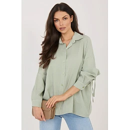 Dámská košile v casual stylu, která se skvěle hodí jak do každodenních outfitů, tak do práce. Klasický, hladký vzor dělá z modelu univerzální kousek, který lze snadno kombinovat s různými kousky oblečení, od elegantních kalhot až po džíny. Košile je vyrobena z vysoce kvalitní směsi lyocellu, bavlny a lnu, díky čemuž je materiál lehký, prodyšný a příjemný na nošení. Standardní délka umožňuje nosit ji jak zasunutou do kalhot nebo sukni, tak volně. Model má klasický límec a dlouhé rukávy, které zdůrazňují nadčasový charakter košile. Další výhodou je praktické šněrování na zádech, které umožňuje upravit šířku košile a lépe ji přizpůsobit postavě, přičemž celkově dodává subtilní, ženský akcent.