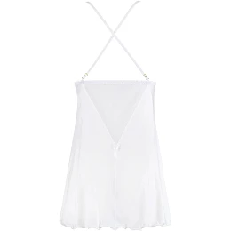 Objevte svou svobodu v naší efektní, bílé babydoll s bohatě zdobenými proužky na dekoltu.