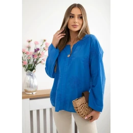 Košeľová blúzka IT-67 s vyšívaným vzorom - chrpová modrá