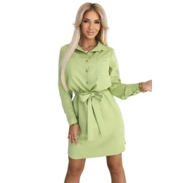 Košilové šaty s kapsami a vázáním OLIVE model 21104101 - numoco