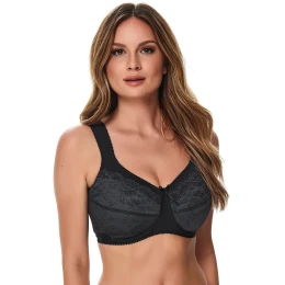 Braletka Kostar, model 308, s nastaviteľnými ramienkami, ktoré sa nedajú odopnúť, kovové háčiky na ramienkach, zapínanie na háčik a očko, zapínanie na chrbte, vyrobená zo 60% polyamidu, 25% bavlny a 15% elastanu, dámska, s vloženým vreckom.