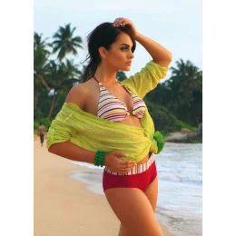 Tieto dvojdielne bikiny so šortkami sú farebné pruhované bikiny pre športový dovolenkový vzhľad, ideálne na kúpanie a opaľovanie, s ramienkami a viazaním pre pohodlné nosenie, vystuženými košíčkami s vyberateľnými vypchávkami, ramienkami s malými bižutérnymi akcentmi a hladkými šortkami s ozdobným lemovaním. 82 % polyamid, 18 % elastan.