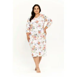Dámská košile s rukávy v délce 7/8, vyrobená z jemné vzorované bavlny. Kulatý výstřih, košile má jemné řasení. Délka před kolena.