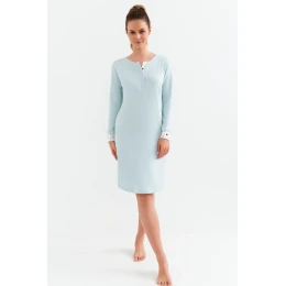 dekolt okrągły z rozchodzącym polo na 3 miętowe, perłowe guziczki