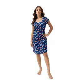 Noční košile značky Luna, s potiskem, vzorovaná, s krátkými rukávy, kulatým výstřihem zdobeným lemováním, mírně zaoblená spodní část. Délka košile před kolena.