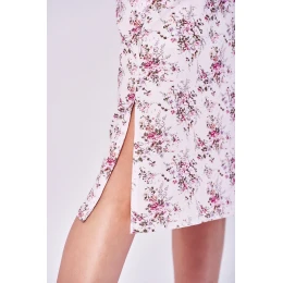 Dámské tričko s krátkým rukávem ušité z kvalitní vzorované bavlny. Délka košile je ke kolenům, na bocích jsou jemné otvory, rukáv košile je zakončen krajkou.