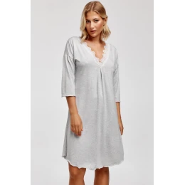 Nocna marki Azal. Model Koszula Nocna. Produkt został wykonany z 92% wiskoza, 8% elastan. Długość rękawa: 3/4. Długość: midi. Produkt damski. Rodzaj dekoltu: szpic.