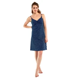 Pohodlné a komfortné dámske tričko s tenkými ramienkami ušité z výnimočne mäkkej vzorovanej bavlny. Výstrih, nastaviteľné popruhy. Dĺžka ku kolenám.