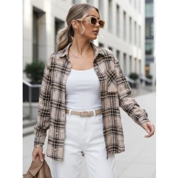 Dámska kockovaná košeľa s odreninami béžová FashionStreet DY0485