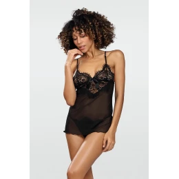 Košieľka má priliehavý strih, ktorý zvodne zvýrazňuje tvary ženskej postavy. Ramienka sú tenká a ich dĺžku je možné nastaviť. Komplet dopĺňajú čierne nohavičky string (tanga).