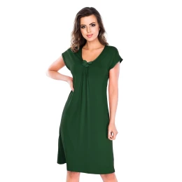 Košeľa je vyrobená z veľmi kvalitnej viskózy s prídavkom elastanu. Pologuľatý výstrih je obšitý saténovou lemovkou, ozdobený mašličkou a jemným nariasením.