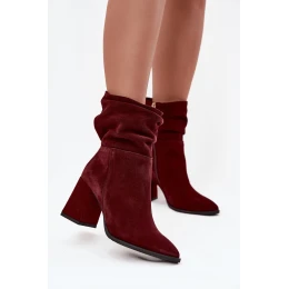 Kotníkové boty z přírodního semiše s vyhříváním na podpatku s mašlí Zazoo 4216 bordó