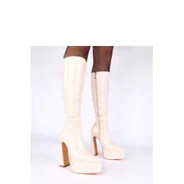 Elegantní lakované kozačky vyrobené z vysoce kvalitní ekologické kůže, které okouzlují elegancí a moderním výrazným stylem. Jejich vysoký 37 cm nárt krásně zdůrazňuje nohu, vytvářející výjimečně ženský a odvážný vzhled. Model má špičatý nos, který botám dodává štíhlost a eleganci. Kozačky jsou umístěny na stabilním sloupkovém podpatku o výšce 15 cm, a dodatečná platforma 5 cm zajistí pohodlí, odlehčí nohu a usnadní chůzi přes impresivní výšku podpatku. Vnitřek je vybaven textilní vložkou a absence výplně z něj činí model ideální volbou pro přechodné období nebo elegantní výlety. Praktické zapínání na zip usnadňuje obouvání a svlékání, zároveň se starajíc o ideální přizpůsobení noze. Je to nabídka pro ženy, které milují výrazný, luxusní styl a chtějí přidat svým outfitům špetku silného, módního charakteru.