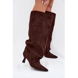 Dámské kozačky vyrobené z ekosuede jsou stylovým návrhem pro ženy, které si cení výrazných detailů. Model vyniká širokou, zahnukanou šachtou, která dává botám módní charakter a přitahuje pozornost. Klenutý podpatek decentně zjemňuje postavu a špičaté špičky zdůrazňují elegantní linii boty. Přetažený střih zajišťuje pohodlí a usnadňuje obouvání, což z kozaček dělá skvělý doplněk do každodenního nošení. Tento efektní obuv je ideální na přechodné období, které skvěle doplní outfity s šaty, sukněmi nebo kalhotami.