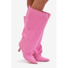 Tieto dámske čižmy vyrobené z ekokože sú štýlovým dizajnom pre ženy, ktoré ocenia odvážne detaily. Model má široký zvršok so zvlnením, ktorý dodáva čižmám módny charakter a priťahuje pozornosť. Tenký podpätok jemne zjemňuje postavu a špicatá špička zvýrazňuje elegantnú líniu topánky. Nazúvací strih poskytuje pohodlie a uľahčuje obúvanie, vďaka čomu sa čižmy skvele hodia na každodenné nosenie. Táto veľkolepá obuv je ideálna na prechodné ročné obdobia, pričom dokonale doplní outfit so šatami, sukňami alebo nohavicami. materiál umelý semiš