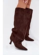 Dámské kozačky vyrobené z eko semiše jsou stylovým návrhem pro ženy, které ocení výrazné detaily. Model vyniká širokým, našitým lýkem, který dodává botám módní charakter a přitahuje pozornost. Tenký podpatek jemně zeštíhluje siluetu a špičaté špičky zdůrazňují elegantní linii boty. Nášivkový střih zajišťuje pohodlí a usnadňuje obouvání, díky čemuž jsou kozačky vhodné pro každodenní nošení. Tento působivý pár je ideální na přechodné období a skvěle doplňuje outfity s šaty, sukněmi nebo kalhotami. Při výběru velikosti se řiďte tabulkou velikostí.