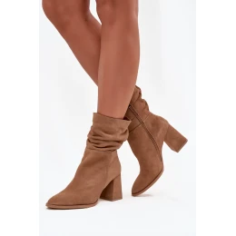 Kozačky z přírodního nubuku vyhřívané na podpatku s mačkáním Zazoo 4216 béžové