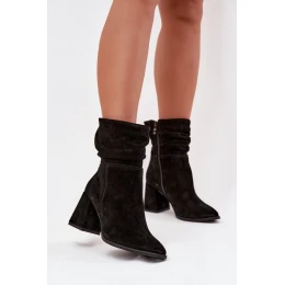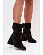 Kozačky z přírodního semiše vyhřívané na podpatku s našitím Zazoo 4216 Černé