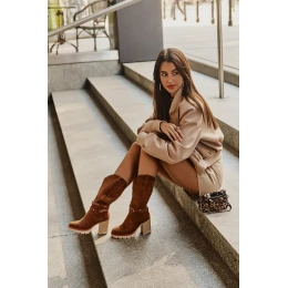 Kozaki Damskie Do Połowy Łydki Na Słupku Ocieplane Camel Ivanelis
