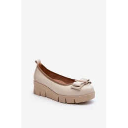 Kožené baleríny na platformě s ozdobou krémové Lewski model 21644614 - Boto
