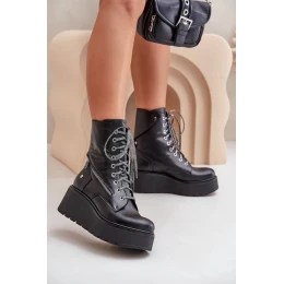 Kožené Botky Worker Na Platformě A Klínu model 21678220 Černé - Maciejka