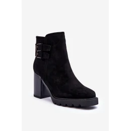 Klasické boty jsou vyrobeny z ekologického semiše. Osazené na podpatku ve formě masivního sloupu. Upevněné zipem na vnitřní straně. Špička je ozdobena pásky s karabinkou. Vnitřek je izolován obuvnickou vložkou. Špička tohoto obuvi je zesílená. Při výběru velikosti se řiďte tabulkou velikostí.