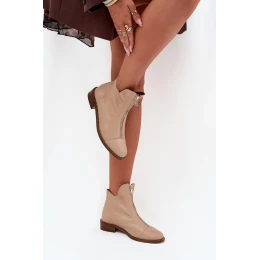 Kožené Boty Na Zip Béžové model 21703516 - Zazoo