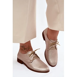 Kožené dámské elegantní šněrovací polobotky Zazoo 4238 Zlaté