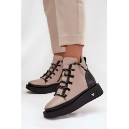 Kožené dámské kotníčkové boty na platformě s Béžové model 21712054 - Artiker