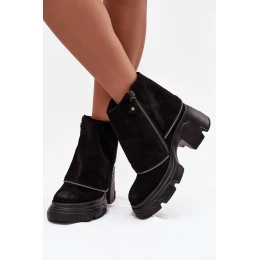 Skórzane Botki Damskie Z Wywiniętą Cholewką Maciejka 07145-01 Czarne