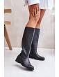 Skórzane Kozaki Damskie Do Połowy Łydki Na Zamek Lewski 3616 Czarne