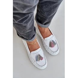 Skórzane Mokasyny Damskie Z Frędzlami Na Platformie I Koturnie Białe Eleazetta