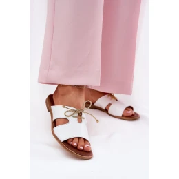 Skórzane Klapki Damskie Na Płaskim Obcasie Zazoo 3022 Białe